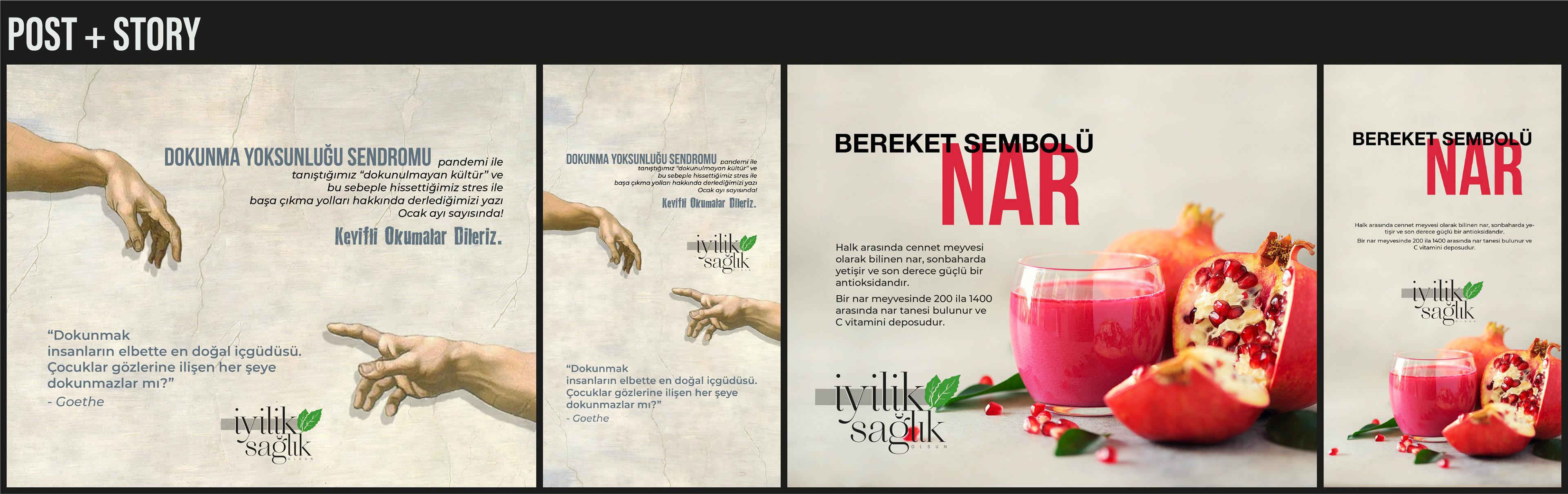 Social media work of Istanbul-based health and life magazine Iyilik Sağlık Olsun.