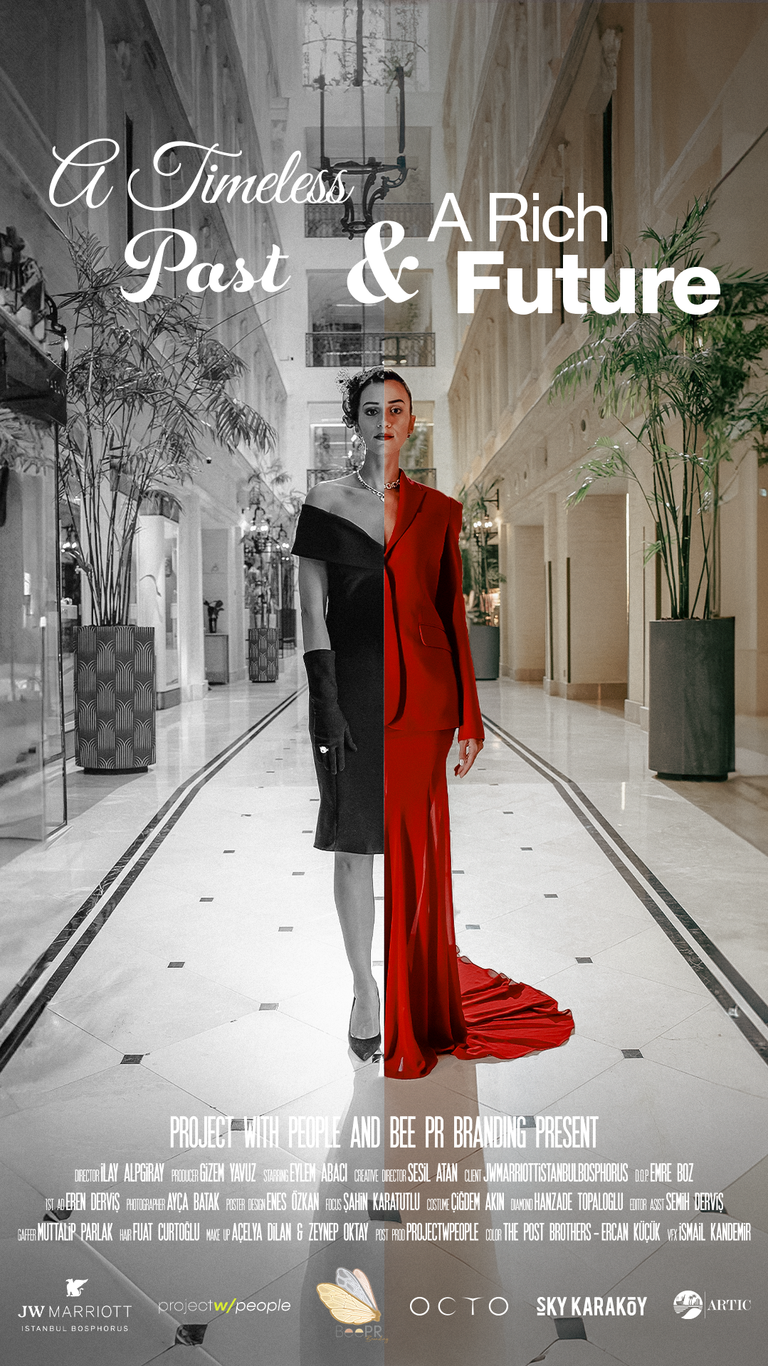 Türkiye Cumhuriyeti’nin 100. yılını konu alan, İlay Alpgiray’ın yönetmeni olduğu ‘A Timeless Past and a Rich Future’ filmi afiş tasarımı. Berlin Indie Film Festival kapsamında ‘Best Fashion Film’ ödülü alarak açılış yapan film, World Film Festival in CANNES festivalinde finalist oldu ve Toronto Independent Film Festival kapsamında ‘Best Short Women’s Issue Film’ ödülünü aldı. Poster design for the film “A Timeless Past and a Rich Future”, directed by İlay Alpgiray, centered on the 100th anniversary of the Republic of Türkiye. The film opened by winning the Best Fashion Film award at the Berlin Indie Film Festival, was a finalist at the World Film Festival in Cannes, and received the Best Short Women’s Issue Film award at the Toronto Independent Film Festival.